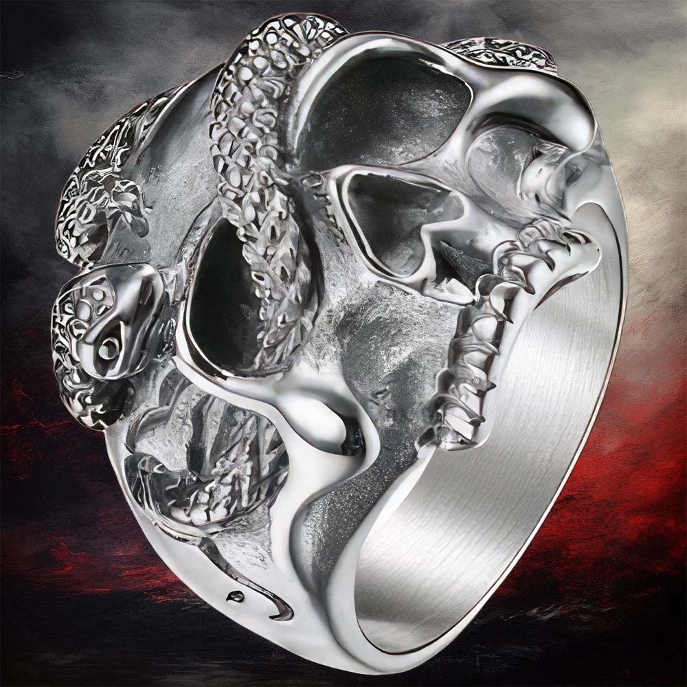 Plongez au cœur de l’obscurité avec la bague gothique Skull et Serpent, une pièce maîtresse qui capture l’essence même de l’élégance gothique. Conçue pour ceux qui osent afficher leur individualité avec audace, cette bague est un véritable symbole de puissance et de mystère. Façonnée dans un acier inoxydable de haute qualité, elle arbore fièrement une tête de mort, éternel symbole de la vie au-delà de la mort, entrelacée d’un serpent, créature à la fois vénérée et crainte pour son charme mortel. Cette alliance entre la mort et la renaissance représente la dualité de la nature humaine, une pièce qui ne manquera pas d’attirer l’attention et de susciter les conversations.